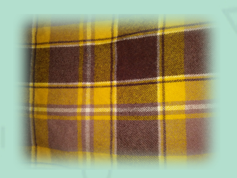 Above, a midcentury 100% wool stadium blanket in yellow, brown and beige plaid from Faribault Woolen Mill in southern Minnesota. I don’t know if this is an official Scottish tartan. The company changed its name to Faribault Mill in 2022 when it bought Brahms Mount, a cotton mill, in 2022.The small fringed blanket is 100% wool. Excluding fringe it measures 50″ x 52″.There is an approximately 8″ long “biscuit” shaped patch that looks to be professionally inserted, so I am guessing this blanket was sold as a second. If the patch were a jewel, I believe the shape would be called marquis. The patch is somewhat hard to see.Apparently the Faribo name and three snowflakes are part of the branding. No zip code shown so maybe this is from before 1963 when zip codes came into use.Audio of three sets of wind chimes.